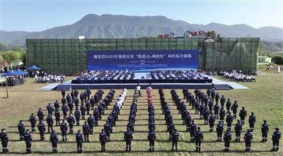 本报讯(记者 鲁芳 通讯员 方盈颖 谭波)4月14日,湖北省2025年地质灾害“隐患点+风险区”双控综合演练在通山县大畈镇下杨村举行,部、省、市、县相关领导及多部门负责人亲临演练现场进行观摩指导。