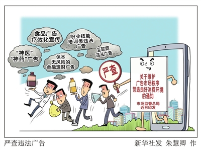 新华网消息 记者17日从市场监管总局获悉,今年将严查“神医”“神药”广告、食品广告疗效化宣传、保本无风险的金融理财广告、职业技能培训类违法广告、互联网违法广告等,切实守护消费者合法权益。