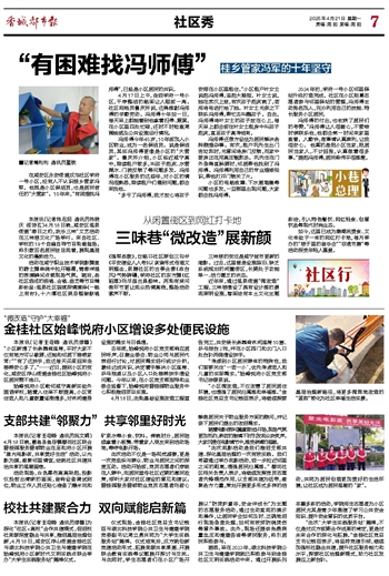 “小区微改造,不仅改善了居民居住环境,也增强了居民归属感和幸福感。”金桂社区党总支书记钱臣表示,将继续探索基层治理新路径,将更多微阵地改造的“蓝图”转化为社区幸福生活实景。