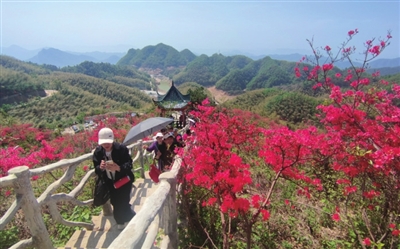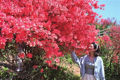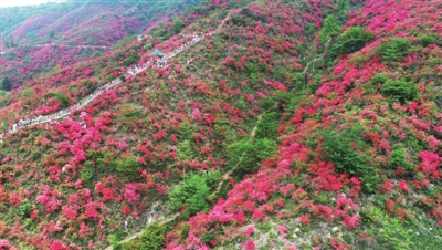 4月18日,春光明媚,记者踏入通山县大幕山,只见山坡上大片的杜鹃花已悄然盛开,宛如一片绚烂的云霞,将这片乡土装扮得分外妖娆,吸引了众多游客共同沉醉在这片花的海洋中。