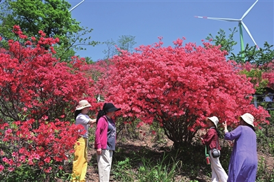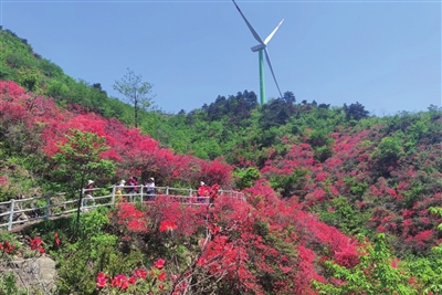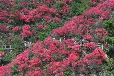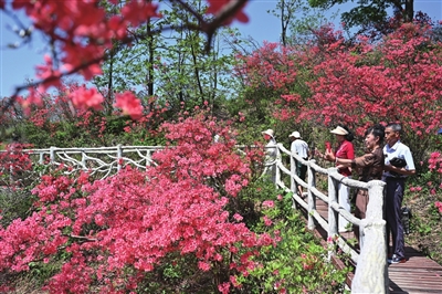 游客们沿着步道而行,有的驻足观赏,有的拿出手机拍照留念,有的则静静地站在花丛中,感受着这份来自大自然的馈赠。孩子们在花丛中追逐嬉戏,欢声笑语此起彼伏,为这片花海增添了几分生机与活力。目前,大幕山杜鹃花已进入最佳观赏期,预计花期将持续至5月初。