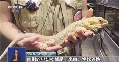 在北京朝阳区一家专营“异宠”观赏与销售的宠物馆里,记者看到了上千只形态各异的“异宠”,其中,蜥蜴占了相当比例。这些蜥蜴不仅外形多样,色彩斑斓,而且据店员介绍,它们都来自国外。比如有澳洲东部的鬃狮蜥和来自印度、巴基斯坦的豹纹蜥蜴。
