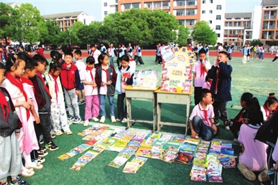 4月23日,“好书漂流贸易节”将活动推向高潮。学生们化身精明“书商”,以自制海报装点摊位,经典文学、科普读物、童话绘本琳琅满目。在讨价还价的童声里,书籍完成了跨越心灵的旅行。