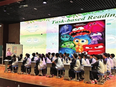 在专题分享环节,来自咸宁碧桂园学校、咸宁实验外国语学校交流至泉都学校和咸宁市温泉中学的三位教师带来了三场精彩的专题讲座。其中,周倩老师的专题分享为《聚焦中考备考 四大黄金法则》。她从自身、学校、家长和学生四个层面,详细分析了教师的“教”、学生的“学”、学生的“管”和家校共建的“一颗爱心”。夏洁茹老师的专题分享为《从解题到思维:英语任务型阅读的教考共振法则》,分别就“教考共振”、题型解析、课例研讨三方面进行分享和研讨,强调中考题型命题要求:无价值,不入题;无思维,不命题;无情境,不成题;无任务,不立题。同时,针对任务型阅读,夏洁茹利用“问卷星”对市外校和泉都学校的学生做了一个精准的学情诊断,结合课例进行点评,强调任务链设计阶梯化,思维训练结构化,技术融合智能化,备课范式革新化。康艳芳老师的专题分享为《英语新中考,智慧“悦”读》。她以诙谐、幽默、热情的语言感染了在场所有人,大家互动热烈,在轻松的氛围中学习了如何利用deepseek和豆包,提升教学效率,更加有的放矢地因材施教。与此同时,康艳芳还强调教师在日常教学中要多关注时文阅读,并且要关注有关传统节日的特色作业,为阅读做铺垫。
