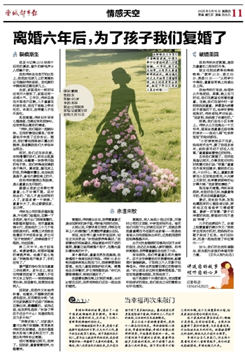 如今,我们的生活和谐融洽,彼此都为家庭的幸福而努力着。 (文中人物为化名)