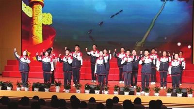 晚会在防空警报声和纪录片《不能忘却的记忆》中拉开序幕,带领观众重回烽火岁月。现代舞《鲜艳的党旗》以舞姿展现革命豪情,情景朗诵《英雄祭》结合影像与诵读再现英雄壮举,合唱《祖国不会忘记》《敕勒川》《黄河颂》以激昂旋律致敬先烈,情景剧《如愿》则演绎了新时代青年的家国担当。最后,全场师生挥舞红旗,齐唱《歌唱祖国》,嘹亮歌声将现场化作红色海洋。