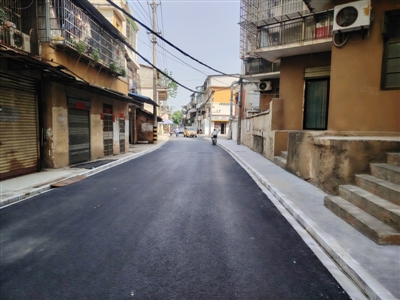 经过15天的紧张施工,如今的北门路焕然一新。改造工程不仅铺设了地下雨水管,确保雨季时道路不再积水,还对道路进行刷黑,路面平坦整洁。