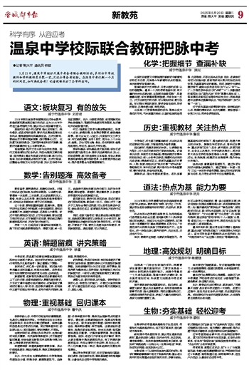 5月15日,温泉中学组织开展中考备考联合教研活动,多所初中学校教师和学科教研员齐聚一堂,交流分享备考经验。在距离中考仅剩一个月的时间里,如何高效备考?记者现场采访了各学科老师。