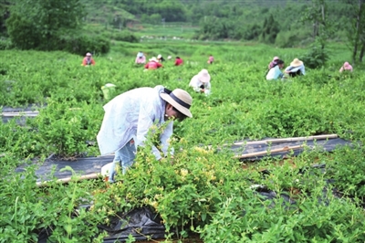 基地的金银花藤上,花朵密密麻麻,今年的开花量格外喜人。湖畔村村主任程开明介绍,每斤采摘工钱10元,熟练工一天能摘20斤左右,有利带动了周边农业就业增收,让村民们在家门口就能实现就业。