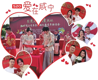 5月20日,通山县20对新人身着华服举行集体婚礼,他们在亲朋好友和现场观众的祝福声中,共同开启了一段幸福的人生旅程。当天,咸安区民政局婚姻登记处共为182对新人办理了结婚登记。