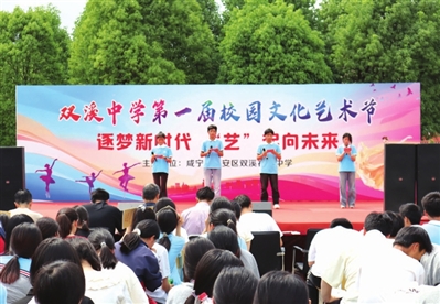 本报讯 (通讯员 占琳) 5月19日下午,咸安双溪初级中学举办首届校园文化艺术节。孩子们用美妙的歌声、灵动的舞姿和充满活力的表演,为全校师生带来了一场视觉与听觉的盛宴。