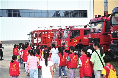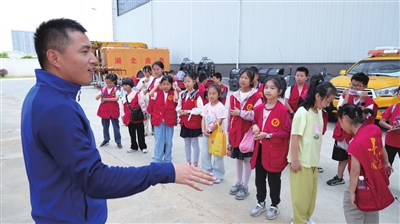 走出室外,小记者们走进充气消防逃生体验屋、登上水域救援指挥艇,听着讲解员介绍各类应急救援车,对应急救援工作有了更深的认识,对维护社会安全生产生活的应急救援人员更加钦佩。