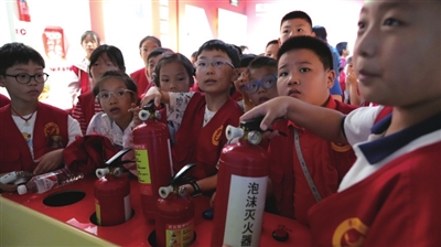 在日常模拟灭火体验系统前,排起了长队。小记者们学习各种模拟场景下的火灾特点,灭火方法。通过红外感应装置,面对学校、商超、家庭等模拟场景,需要在30秒内完成“拔销、瞄准、喷射”的标准化操作。“首先要看清火灾类型,电器类着火,要先断电。灭火器要瞄准火焰根部才能有效!”讲解员强调道。