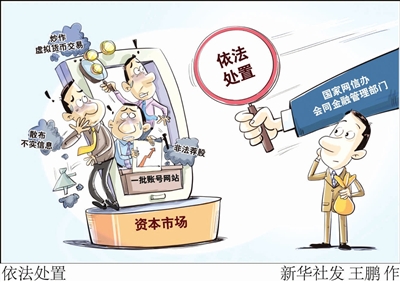 记者5月24日从国家网信办获悉,近期,国家网信办会同金融管理部门依法处置一批散布资本市场不实信息、开展非法荐股、炒作虚拟货币交易等的账号、网站。