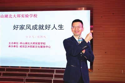 在咸安区贺胜桥镇人大主席游世胜宣布咸宁市梓山湖北大邦实验学校“525心理健康节”系列活动正式启动后,咸安区家庭教育研究会副秘书长刘国庆以《好家风成就好人生》为题开展讲座,通过互动游戏、角色扮演、经典案例剖析,生动阐释优良家风对孩子成长的重要性。