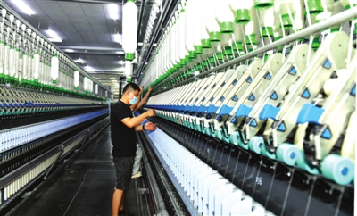 近日,咸安经济开发区湖北天源纺织股份有限公司纺纱车间,工人们正在机器旁忙碌。
