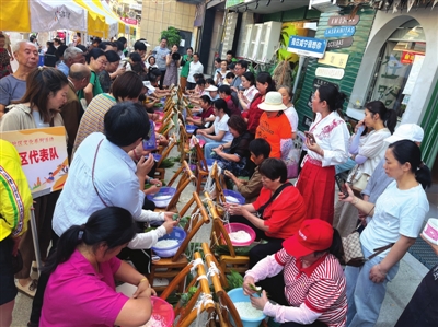 艾叶清香弥漫,彩绳手中舞动。5月30日上午,咸安区温泉街道在潜山商业街举行“乐在潜山”社区文化系列活动暨2025“潜山粽王争霸赛”。活动旨在弘扬中华优秀传统文化,增强社区凝聚力,打造潜山特色端午年度文化品牌,让广大市民在欢乐祥和的氛围中度过一个难忘的端午节。