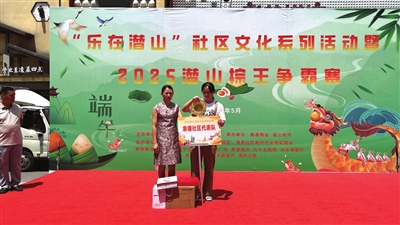 激烈赛事间隙,文艺舞台流淌着别样风情。滨河社区的楚剧唱腔悠扬古朴,万年路社区的诗朗诵《橘颂》带人回溯千年汨罗江畔的忧思。端午知识问答环节,稚嫩童声准确答出“五色丝线”的寓意,传统智慧在互动中悄然传承。舞台边精心设置的打卡区,居民们手持粽子奖牌,将这份融合了竞技火热与传统温情的端午记忆,以包粽子比赛、文艺演出等形式拉近邻里之间的距离,融洽邻里之间的感情。