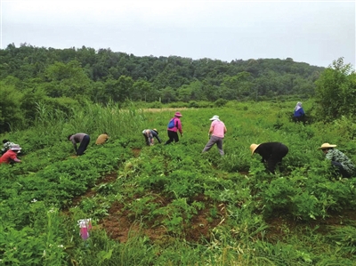 本报讯(记者 叶子 通讯员 谢泽禧)5月25日,在高铁岭镇石泉村中药材基地,一幅热火朝天的劳作景象映入眼帘。两三百亩的中药材地里,数十名村民正弯着腰,专注地进行除草作业,为中药材的茁壮成长“保驾护航”。