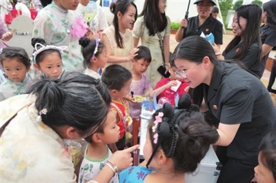 当日上午,在幼儿园门口,干警们迅速支起“普法小摊”,化身亲切的“禁毒小卫士”,精心设计了一系列贴合幼儿兴趣的普法环节。