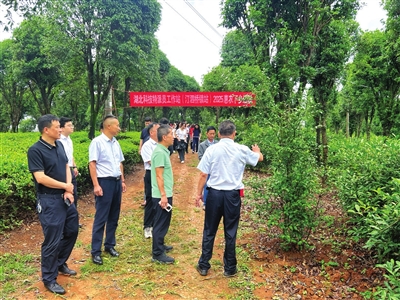 本报讯 (记者 陈婧) 5月28日,咸宁市汀泗桥镇彭碑村的川玉生态茶园内,1200亩碧绿茶园与11万株桂树相互映衬,勾勒出一幅绿意盎然的生态画卷。当日,湖北科技特派员工作站(汀泗桥镇站)2025惠农下乡暨省级乡村振兴科技创新示范基地2025年科技活动周技术培训会在此盛大启幕,省、市、区三级科技特派员、茶农代表及湖北科技学院师生等60余人齐聚,共探科技驱动传统茶产业转型升级的创新之路。