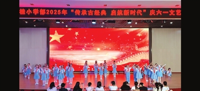 本报讯 (通讯员 陈遥) 首夏犹清和,芳草亦未歇。为丰富校园文化生活,健全学校五育并举育人体系,弘扬中华优秀传统文化,营造良好的校园艺术氛围, 5月30日上午,在第75 个“六一” 国际儿童节来临之际,咸安区实验学校教育集团银桂校区小学部举行了“传承古经典,启航新时代”庆“六一”文艺汇演。