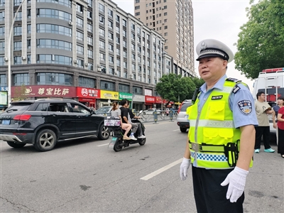 6月7日早上7时许,佘志坚整理好警容装备,赶到了咸宁高中考点执勤岗。距离考试开始还有2个小时,他和同事熟练地设置交通管制提示牌、反光锥筒、巡查考场周边秩序,每一个动作都格外用心。一会功夫,佘志坚和同事早已汗流浃背。