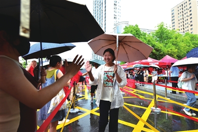 雨时淬火,自有舟楫。骤雨倾盆时,淦河泛起粼粼波光。青龙山高中考点的檐下,水珠坠成珠帘,雨水冲刷的道路更显坚韧,正如磨砺过的宝剑愈显锋锐。