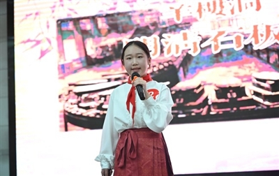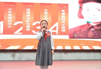 10号选手讲述《钱瑛奶奶的故事》,采取了图文、说唱结合的方式,把钱瑛的英雄事迹讲述得活灵活现,呼吁同学们“争做新时代的小钱瑛”,感染着现场每一位观众。