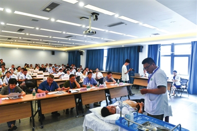 据了解,大赛分为三个大项目、九个小项进行。中医适宜技术大赛分为针刺类、推拿类、拔罐类、灸法类现场操作4个小类,并分为二级及以下医疗机构代表队和三级医疗机构代表队两组分别进行比赛。每支代表队4位选手各对应一类中医适宜技术项目进行现场操作,操作过程中可适当融入创新内容、特色手法,可作为加分项,由专家评委现场打分。