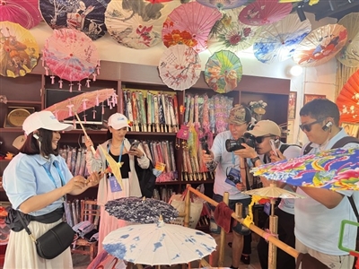 采访团一行深入探访羊楼洞明清石板街、赵李桥砖茶制作技艺传承馆、中国青砖茶博物馆等地,漫步在沿街特色商铺、创意旅拍店和青砖茶馆之间,近距离欣赏赤壁脚盆鼓表演,观摩青砖茶制作流程,全方位了解赤壁青砖茶深厚的历史文化底蕴、古法制茶技艺的传承与创新以及非遗保护情况,与非遗油纸伞传承人、旅拍店主、青砖茶技艺大师、文旅部门相关负责人等深入交流,力求多维度展现赤壁青砖茶的“前世今生”。