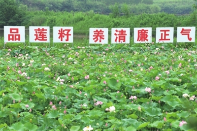 在推进清廉村居建设的过程中,北冲村巧妙地将荷花“出淤泥而不染,濯清涟而不妖”的高尚品质融入其中,荷花池旁的廉洁标语,与盛开的荷花相得益彰。