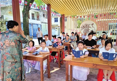 本报讯 (记者黄兰芬 通讯员施雪萍) 近日,在咸安区温泉街道南昌路社区三和小区,清廉村居教育基地国学推广中心户外讲堂,一场由居民自发筹备的“真情‘父’出·爱在仲‘夏’”阅读分享活动温馨开启,为居民带来了一场别开生面的国学文化盛宴。