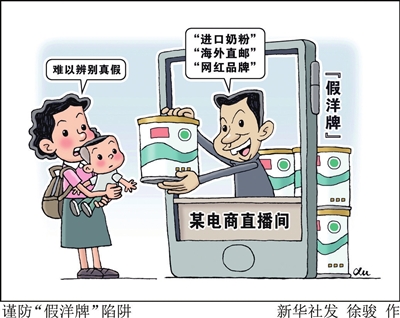 新华网消息 近日,某电商直播间伪进口奶粉乱象被曝光,揭开直播间兜售“假洋牌”灰色产业链。直播间里主播用精心准备的话术吆喝鼓动,让许多消费者防不胜防、掉入消费陷阱。