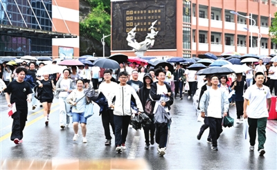 6月22日,随着最后一科考试结束铃声的响起,2025年咸宁市中考圆满落幕。中考三天恰逢雨天,全市3.9万余名考生在井然有序的考试环境中,顺利完成人生首次重要考试,为初中生涯画上圆满的句号,奔赴新的征程。 (记者赵忠志)