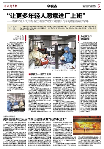 履职期间,余婷积极参加省市人大组织的调研活动,深入高新区企业走访,广泛听取民声意见,为一线产业工人鼓与呼。在2025年湖北省两会上,余婷提出的“关于加强技术工人技能培养”建议得到了省市教育和人社部门的认真回复。