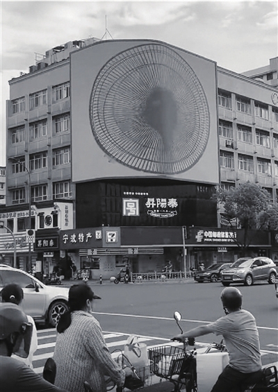 在网友们拍摄分享的视频中可以看到,原本展示广告和城市风貌的大屏上,赫然出现一台夸张的摆头电风扇,风扇扇面几乎撑满整个屏幕,风叶猛转,还会左右规律摆动,仿佛真的正在将凉风送往街头。