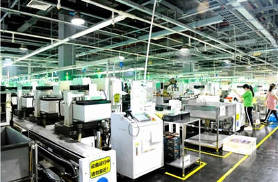 近日,赤壁高新区维达力科技股份有限公司冷加工车间内,数千台精雕机高效运转,自动化工业机械臂灵活作业,工人实时监控机器运行。