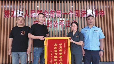 货车司机夏某和陈某,跨越千里从安徽来到崇阳县法院,送上一面写着“千里奔波执正义,高效执行暖民心”的锦旗。“幸亏你们及时制止了我们的危险行为,不然后果不堪设想,拖欠许久的工资也拿到了,太感谢你们了!”夏某和陈某也认识到了自身的错误,并许诺以后遇事不冲动,有话好好说。
