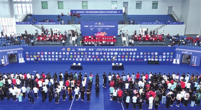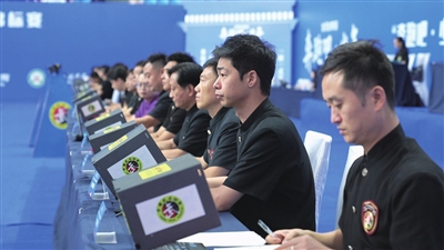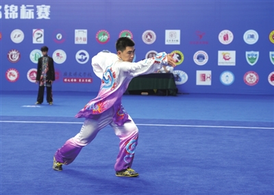提膝、弹腿、冲拳、步伐灵动出脚迅疾……当日上午8时,记者在现场看到,选手们身着明艳的武术服,精神抖擞,气势磅礴。在热身的时间里,他们大展身手,身法行云流水、拳法刚劲有力,各种武术套路被他们演绎得淋漓尽致,赢得阵阵喝彩。