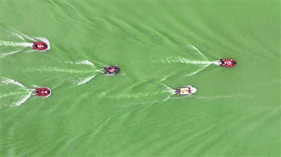 演练现场,多项高精尖装备和先进技术集中亮相,成为亮点。在“舟艇编队行进”科目中,6艘冲锋舟化身“水上尖刀”,逆流而上,灵活、精准地变换三角、一字、S型等多种队形,展现出不畏激流、稳若磐石的操控能力。紧随其后的“水上机器人救援”科目,U型智能救生机器人凭借其流线型设计,在指挥员远程操控下,如同水中精灵般快速抵达模拟落水者位置,实施精准救援。在模拟“孤岛救援”场景,特警队员涉水登岛,有序组织转移“被困群众”。而在紧张的“抛投救援”环节,救生圈在风浪中划出精准弧线,稳稳落在“落水者”身旁,体现了救援队伍过硬的技能和“装备在手,心中有底”的硬实力。