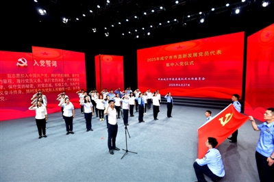 6月27日,市委直属机关工委组织今年新发展党员代表,开展集中入党宣誓仪式。当天,在领誓人的带领下,40余名新发展党员代表面对党旗,庄严宣誓。 (记者 夏正锋 通讯员 黄念)
