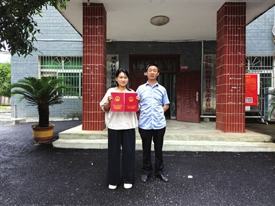 近日,咸安区桂花镇柏墩村村民何立顺领到了崭新的土地承包经营权不动产权证和林权不动产权证。
