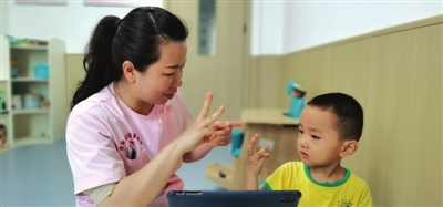 “3岁了,小牧还不会说一句完整的话;从不或很少关注人,无眼神交流且经常答非所问,视而不见;想要东西时,只会用手指着发出‘嗯嗯’的声音……”咸安区妇幼保健院儿童康复科语言康复训练技师张媛告诉记者,生活中,有这样一群孩子,相较同龄人,他们的言语发育迟缓,但因为孩子在牙牙学语期间,这一情况大多没有引起家长的重视,因而导致孩子在3岁多时,还不能用语言完整表达自己的思想。就拿小牧来说,刚到医院的时候,他只会发出“妈”“奶”“姐”3个单音节,相较于已经可以流利表达自己思想的同龄孩子,小牧的词汇量已经是落后了很多,是语言发育迟缓的表现,但由于家长们比较忙,很少有机会来单独陪孩子学说话,导致小牧不仅语言发展滞后,就能性格也比较孤僻。