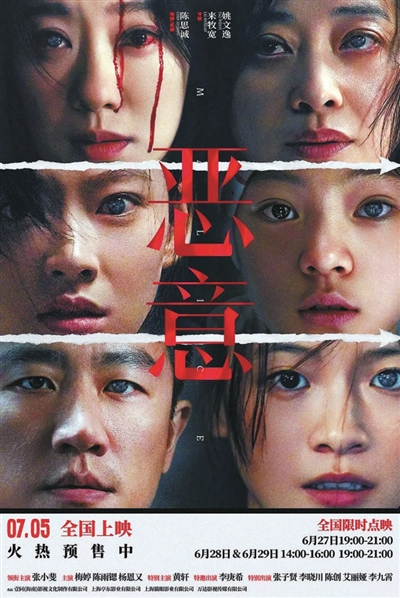 本报综合消息 悬疑犯罪话题电影《恶意》日前在北京CBD万达影城举办了全国首映礼。影片编剧、监制陈思诚,导演来牧宽、姚文逸,主演张小斐、梅婷等亮相,与观众面对面畅聊影片幕后创作故事。电影于7月1日至4日14时至22时开启全国限时点映活动,7月5日全国上映。