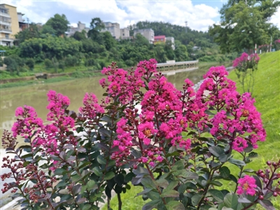 春风播绿意,夏花映河清。历经四个月的科学精细养护,124株紫薇繁花竞绽。这片绚烂“百日红”,将植树节期许化为夏日美景,市民漫步河畔,邂逅这份自然馈赠,感受生态治理带来的清凉慰藉与温馨美好。
