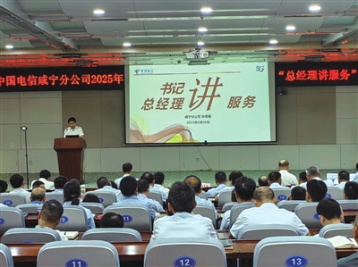 朱军振总经理聚焦以下四个方面对咸宁分公司全年的服务工作进行部署。一是要坚持党建统领,围绕抓服务“强感知、铸品牌、守底线”三大行动,持续打造满意服务卓越工程2.0,要坚决落实工信部2025年行风纠风各项工作安排;二是实施服务领先战略,推进服务显性化,打造差异化,严格推进工信部和省通管局十项服务承诺在企业内部落地,发扬红色电信精神,担当作为,履行社会责任,主动服务好政府和广大客户;三是优化内部流程,打造5+1倒三角支撑体系,实现各类需求有效传导,及时解决用户和一线问题,努力提升客户和一线的获得感、幸福感和安全感;四持续开展“一心为民、服务争先”与“民有所呼、我必有应”全员服务在行动,全员开展不满意客户拜访、“装维”行、“营业”行、“万号”行等管理层跟班和全员服务体验。