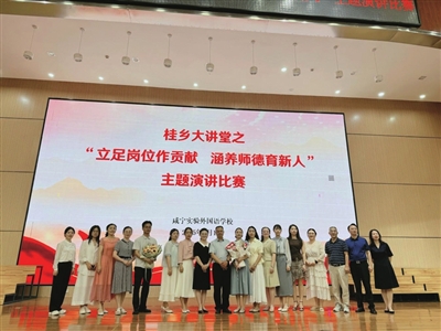 本报讯(记者 熊大平 通讯员 徐秀文)为搭建青年教师成长平台,7月1日,咸宁实验外国语学校举办桂乡大讲堂之“立足岗位作贡献,涵养师德育新人”主题演讲比赛,展现新时代教师的师德风采与教育情怀。