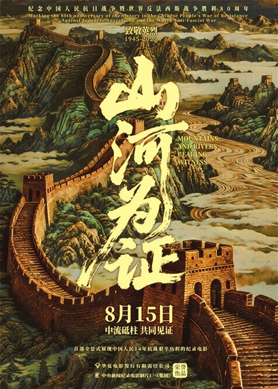 本报综合消息 在纪念中国人民抗日战争暨世界反法西斯战争胜利80周年的重要历史时刻,纪录电影《山河为证》正式宣布定档,将于2025年8月15日登陆全国院线。影片由华夏电影发行有限责任公司与中央新闻纪录电影制片厂(集团)出品,同步发布定档版海报。