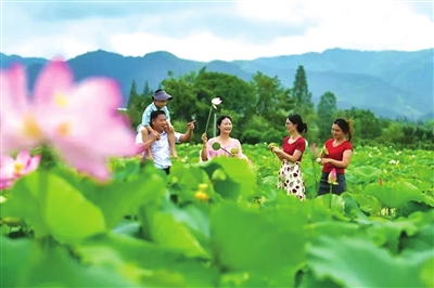通城清水画廊四庄乡清水村千亩荷花与远山相映成趣,漫步塘岸栈道清香扑鼻。当地农户穿梭采莲蓬,现买的清甜莲子香甜又可口!